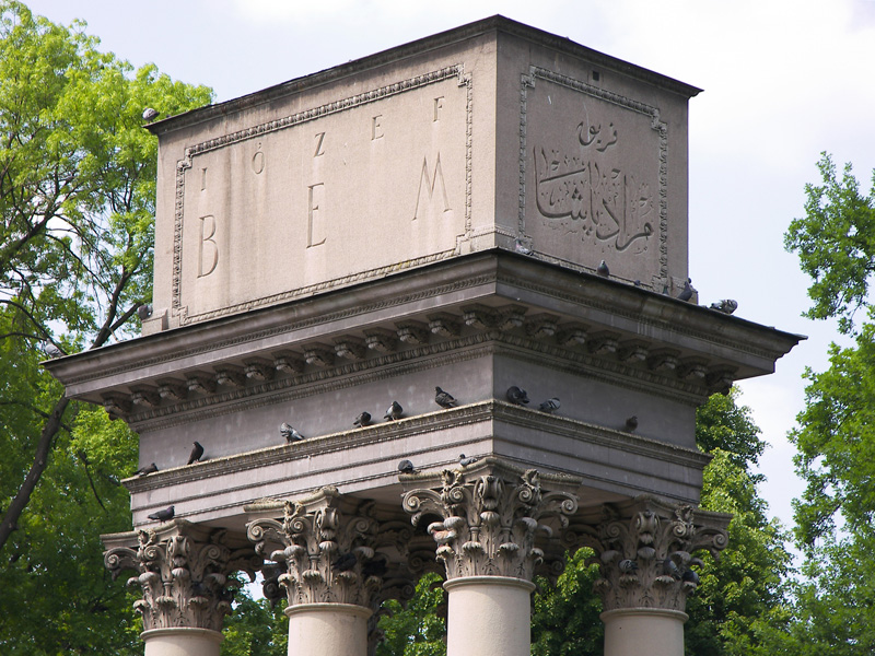 2. Napisy: w języku polskim: Józef Bem, węgierskim: (w tłumaczeniu) Ojczulek Bem, węgierskiej wolności największy obrońca 1848-1849, oraz tureckim, zapisanym arabskim alfabetem: Ferik Murad Pasza (słowo ferik znaczy generał, Murad Pasza – tureckie nazwisko Bema).