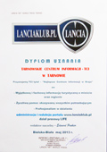 Zertifikat „Najlepsze Centrum Informacji w Kraju“ („Die beste Tourist Information“) für TCI von LanciaKlub.pl |