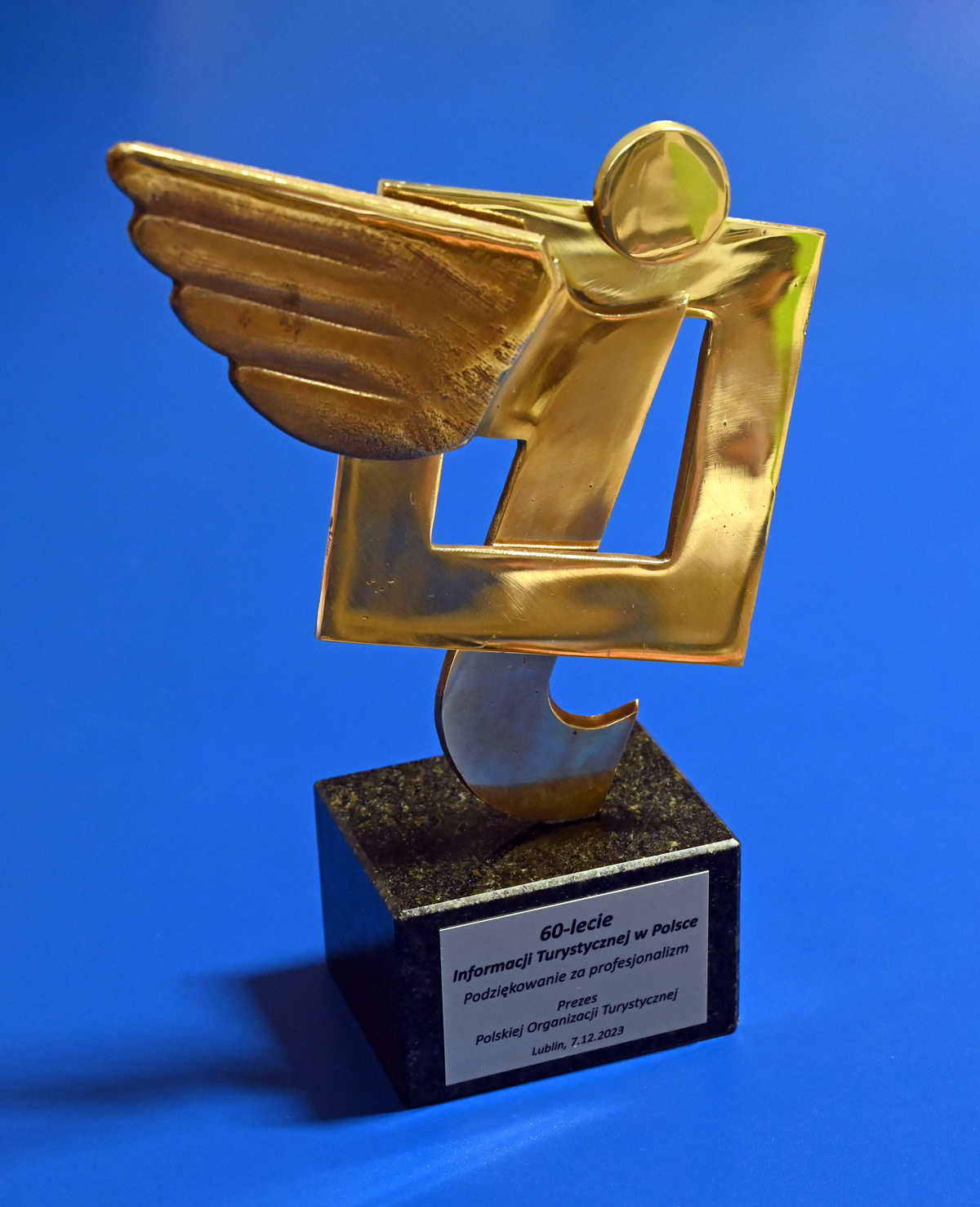 Die Statuette „Verdient für das touristische Informationssystem in Polen“ für den Direktor von TCI – Marcin Pałach Lublin, Dezember 2023