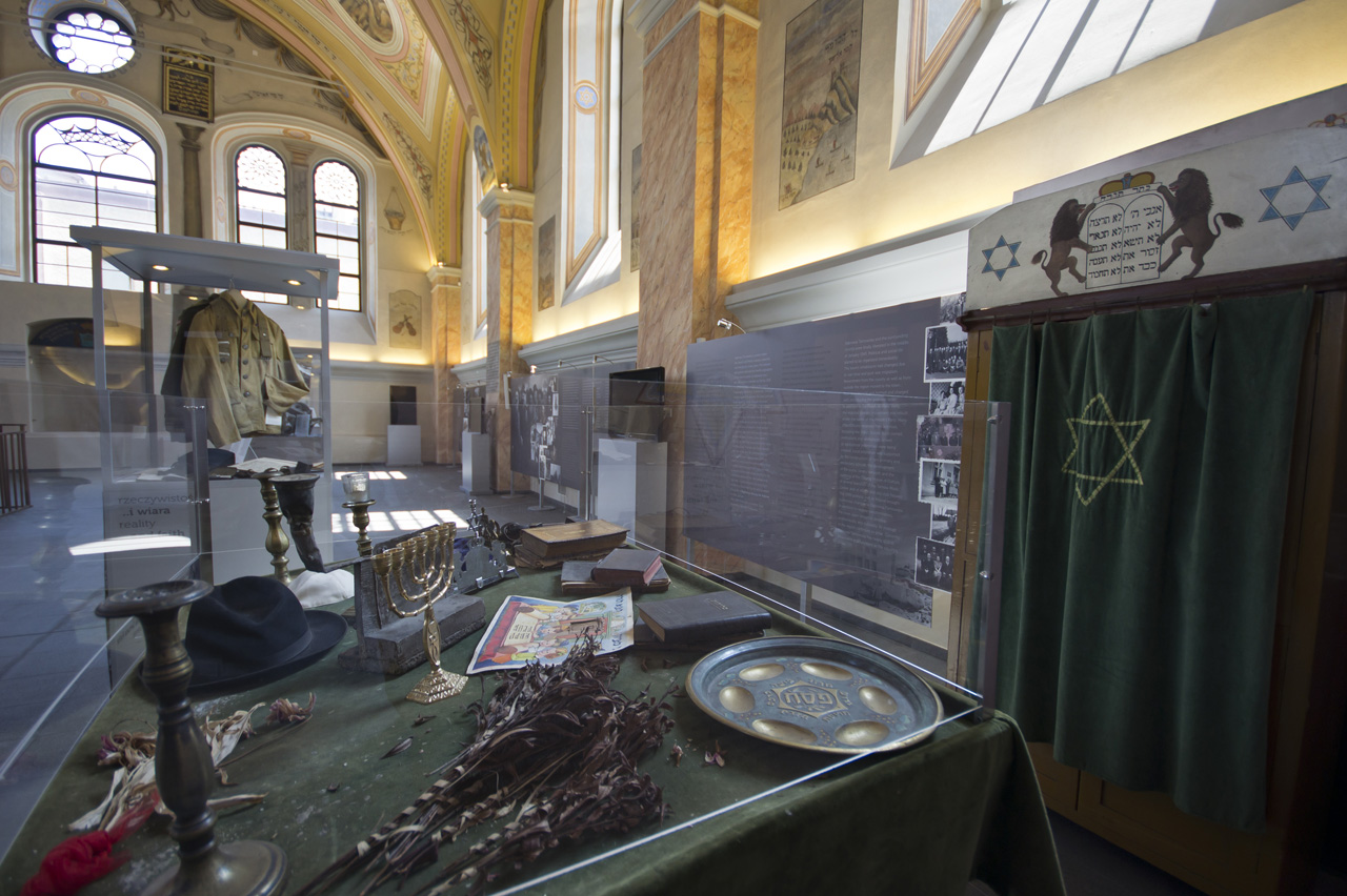 Pieczołowicie odrestaurowany budynek synagogi stoi w samym centrum miasta, przy głównej drodze Tarnów – Kielce. To chluba Dąbrowy Tarnowskiej, uznawana za perłę chasydzkiej architektury w Polsce. A jeszcze kilka lat temu była to postępująca ruina, szpetna i problematyczna. Synagogę wybudowano w II poł. XIX w. z fundacji Izaaka Sterna, według projektu Abrahama Goldsteina. Na początku XX w. razem z małą synagogą dla Żydów ortodoksyjnych i mykwą tworzyła kompleks budynków rytualnych. Po zniszczeniach z lat I wojny światowej wymagała poważnych napraw, których koszt pokrył niejaki Gold, dąbrowianin. W trakcie remontu generalnego przeprowadzonego w latach 1936-1937, drewnianą konstrukcję babińca zastąpiono trzykondygnacyjnym krużgankiem flankowanym wieżami. Synagoga przetrwała II wojnę światową tylko dzięki temu, że Niemcy zamienili ją w magazyn. Zdewastowana, uniknęła jednak losu mykwy, którą rozebrano już po wojnie. Mimo wcześniejszych przymiarek, odbudowę synagogi rozpoczęto dopiero pod koniec I dekady XXI w., a zakończono w roku 2012. Konserwatorom udało się odtworzyć bogatą ornamentykę ścian i sklepień, których znaczące fragmenty przetrwały w głównej sali modlitewnej, sieni oraz na dwóch kondygnacjach babińca. Synagoga jest dziś siedzibą Ośrodka Spotkania Kultur i pełni rolę muzeum oraz placówki kulturalnej.