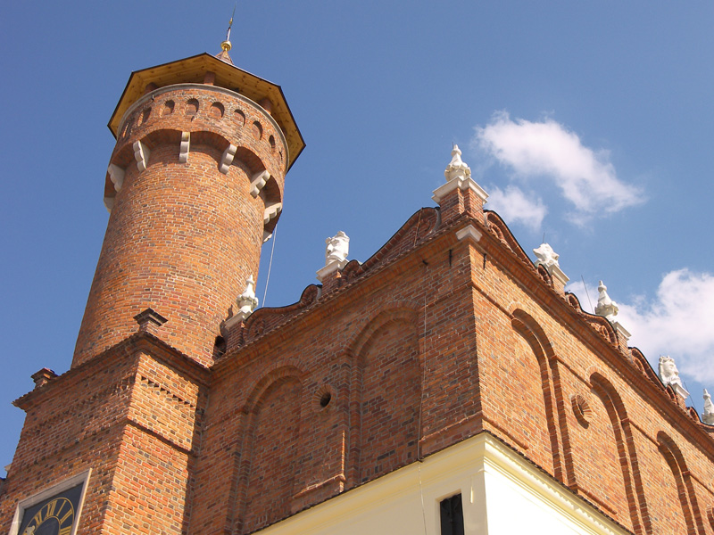 Ratusz został przebudowany gruntownie prawdopodobnie w końcu XVI wieku. Dobudowano podpiwniczoną część zachodnią i ryzalit z klatką schodową od południa. Całość została nakryta dachem pogrążonym za wysoką attyką, wzorowaną na krakowskich sukiennicach. W dwudziestu ośmiu blendach attyki znajdowały się prawdopodobnie namalowane techniką sgrafitto, portrety członków rodu Tarnowskich, od Spycimira do Jana Krzysztofa (zm. 1567 r.). Liczba maszkaronów (14) miała symbolizować czternastu członków urzędujących, starej i nowej rady miejskiej.