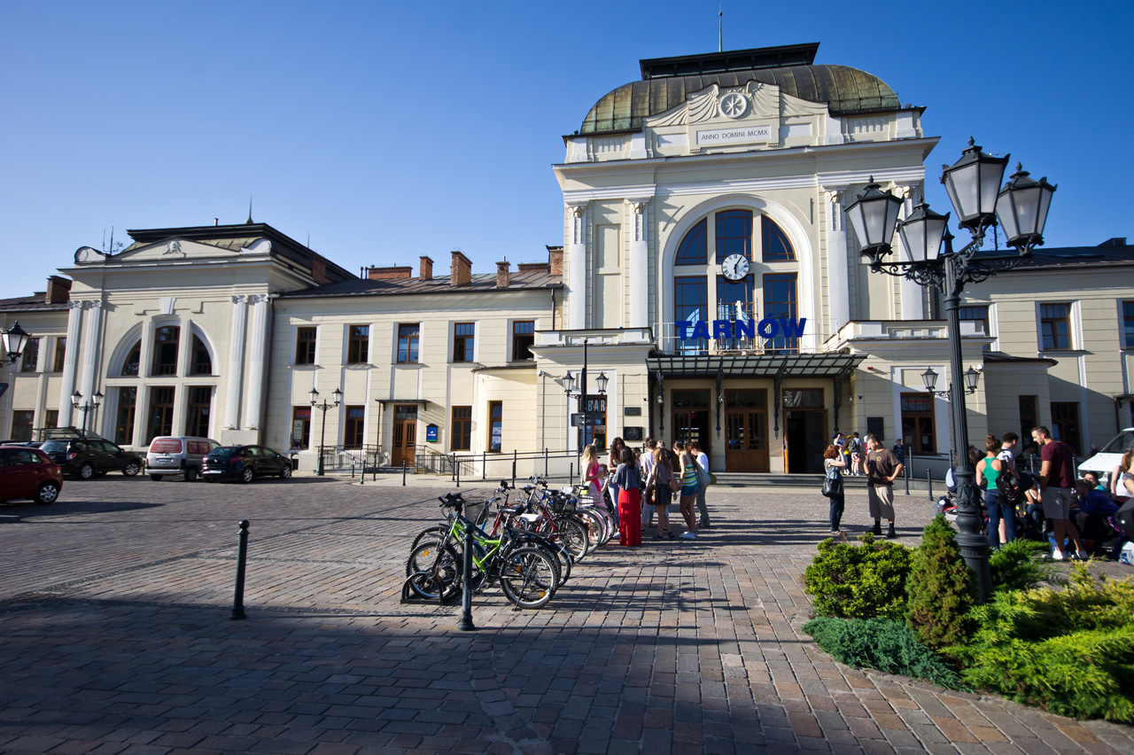 28 sierpnia 1939 roku dworcem w Tarnowie wstrząsnął wybuch bomby umieszczonej przez grupę sabotażystów niemieckich. Dwadzieścia osób zginęło, kolejnych trzydzieści pięć odniosło rany. Pamięci ofiar zamachu poświęcona jest tablica wmurowana na prawo od głównego wejścia. Po przeciwnej stronie od 2005 roku istnieje tablica upamiętniająca wyjazd pierwszego polskiego transportu do obozu koncentracyjnego w Oświęcimiu.