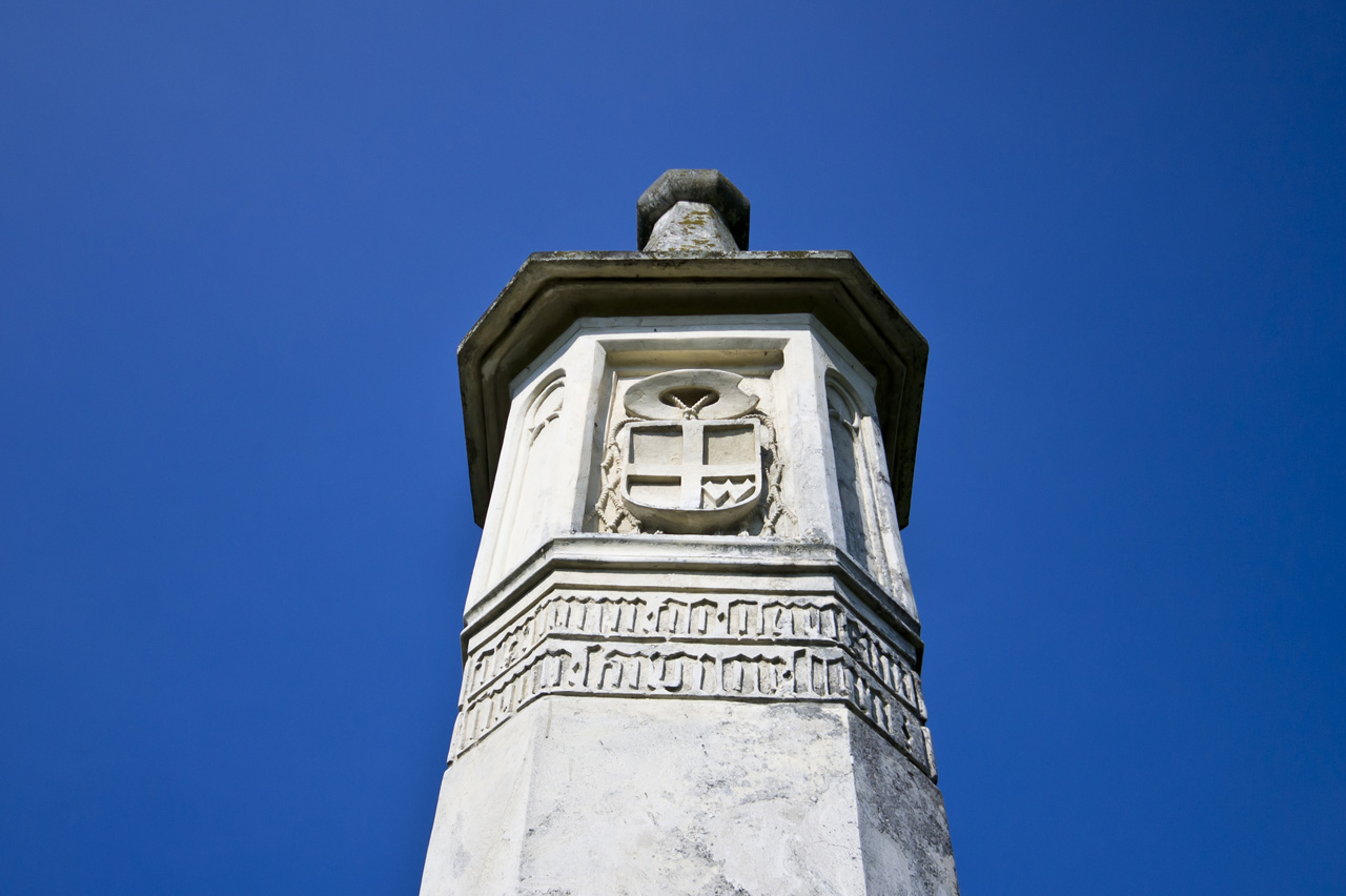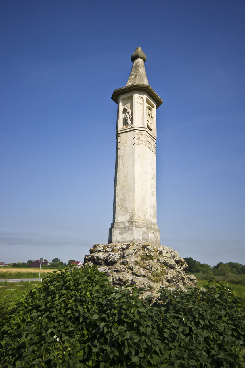 Zatarg pomiędzy Zabawami i Zdrocheckimi z jednej strony, a biskupami krakowskimi z drugiej, o lasy radłowskie zawiniony został przez biskupa Wiesława z Kościelca, który wbrew prawu zezwolił swoim braciom lokować 2 wsie Zabawę i Zdrochec w tychże lasach, które wówczas były własnością biskupią. Po śmierci biskupa Wiesława, bracia zaczęli rościć pretensje do całości lasów radłowskich oraz Biskupic Radłowskich. Spór ten postanowił zakończyć wybitny polityk, biskup Zbigniew Oleśnicki. Postawił, przy okazji innych sporów, przed sądem sprawę rozgraniczenia dóbr biskupich od szlacheckich i w 1450 r., otrzymał wyrok graniczny, w którym Paweł z Taczowa podkomorzy sandomierski przyznał wszystkie ziemie na prawo od słupa biskupom, a na lewo świeckim. Tego samego roku postawiono słup graniczny, który przetrwał do dziś. Wykonany jest z wapienia pińczowskiego, z trzonem w kształcie czworoboku ze ściętymi narożami, swoistą latarnią z płaskorzeźbami i ostrym nakryciem zakończonym kamienną szyszką. Płaskorzeźby przedstawiają sceny Ukrzyżowania, postaci Matki Boskiej Bolesnej, św. Jana Ewangelisty oraz herb Oleśnickiego Dębno, zdobiony kapeluszem kardynalskim. Gotyckie napisy na cokole znaczą: „ten prawdziwy znak rozróżnia duchowieństwo od panów” oraz „Co na prawo przypada duchowieństwu, co na lewo dziedzicom”.
