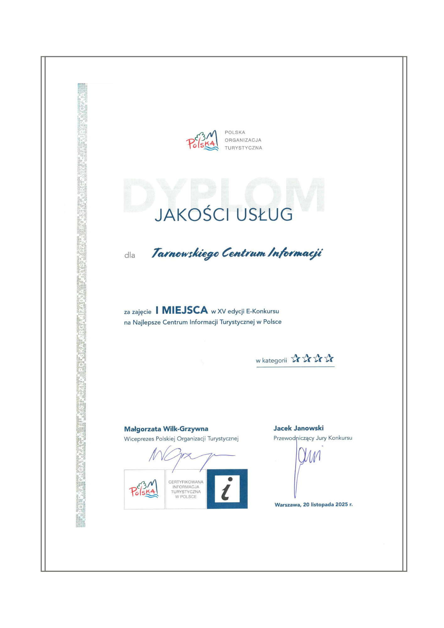 Konkurs Najlepsze Centrum Informacji Turystycznej w 2025 roku I miejsce dla Tarnowskiego Centrum Informacji w kategorii **** Warszawa, 20-11-2025 |