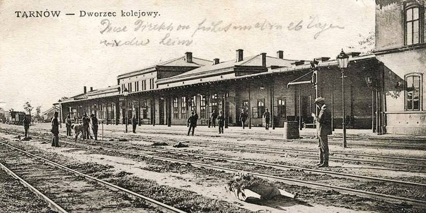 Włączenie do Państwa Habsburgów w 1846 roku Rzeczypospolitej Krakowskiej spowodował pojawienie się pomysłu połączenia linią kolejową Krakowa z Lwowem. Rozpoczęto prace, które zaowocowały utworzeniem w 1853 roku linii Dębica – Bochnia, jednak bez połączenia z Krakowem. Wybuch wojny krymskiej, w tym samym roku, i idące za nią napięcie na linii austriacko – rosyjskiej zmusiły rząd wiedeński do usprawnienia komunikacji w Galicji. Oficjalne otwarcie linii kolejowej biegnącej przez Tarnów nastąpiło 20 lutego 1856 roku. Prasa tamtego czasu donosi o postępach w kładzeniu szyn a także o rozpoczęciu budowy prowizorycznego dworca i infrastruktury zapewniającej płynną obsługę Taboru. Budowa stałego dworca rozpoczęła się prawdopodobnie w 1860 roku. Niestety, nie sposób dziś ustalić dokładnego wyglądu budynku, choć wzniesiony został zapewne według ustalonego schematu funkcjonalnego na który składały się: przedsionek, westybul z kasami, poczekalnie oddzielne dla wszystkich klas pasażerskich oraz restauracja. W obrębie dworca mieściła się także kasa bagażowa, biuro pocztowe i pomieszczenia służbowe kolei. Charakterystyczny był brak przelotowości pomieszczeń w obrębie budynku, szczególnie brak połączenia westybulu z peronem.