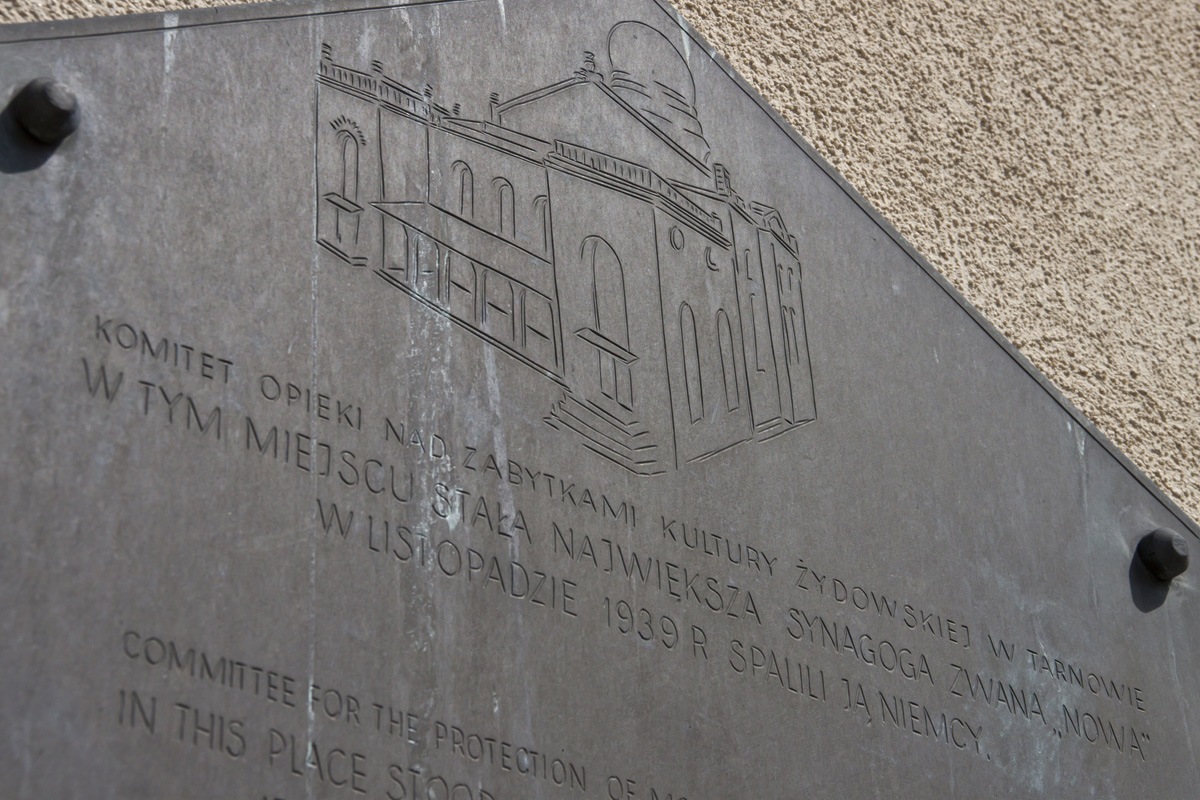 Róg ulic Nowej i Waryńskiego obfitował w instytucje zapewniające gminie żydowskiej poprawne funkcjonowanie. Narożnik ulicy Nowej od strony zachodniej zajęty był przez budynek kahału a więc gminy izraelickiej w Tarnowie, tuż obok niego stała niewielka bóżnica Debory Menkes (Wekslerowej), dobrodziejki gminy żydowskiej i fundatorki szpitala żydowskiego. Na rogu wschodnim zaś ulicy Nowej u zbiegu z ulicą Waryńskiego stała ongiś największa z tarnowskich synagog, Synagoga Nowa bądź też jubileuszowa. Budowano ją niemal sześćdziesiąt lat od 1848 do 1908 roku, oddana została w dniu 18 sierpnia 1908 roku w dniu urodzin Franciszka Józefa, stąd nazwa Jubileuszowa. Oryginalny kształt sprawił, że złota kopuła górowała nad miastem i była dumą tarnowskich Żydów. Niestety społeczności żydowskiej służyła zaledwie trzydzieści jeden lat albowiem tak jak inne synagogi została podpalona przez hitlerowców 9 listopada 1939 roku. Płonęła trzy dni, kilka miesięcy później wypalone mury stawiły kilkudniowy opór nazistom, nie dając się wysadzić w powietrze. We wrześniu 1993 roku z inicjatywy Komitetu Opieki Nad Zabytkami Kultury Żydowskiej umieszczono na ścianie stojącej tu dziś kamienicy pamiątkową tablicę.