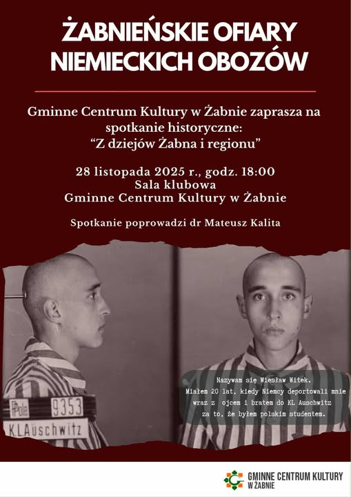 Żabno małopolskieGminne Centrum Kultury w Żabnie zaprasza na spotkanie historyczne: "Z dziejów Żabna i regionu". Data i miejsce: 28.11.2025, godz. 18:00, sala klubowa, Gminne Centrum Kultury w Żabnie.