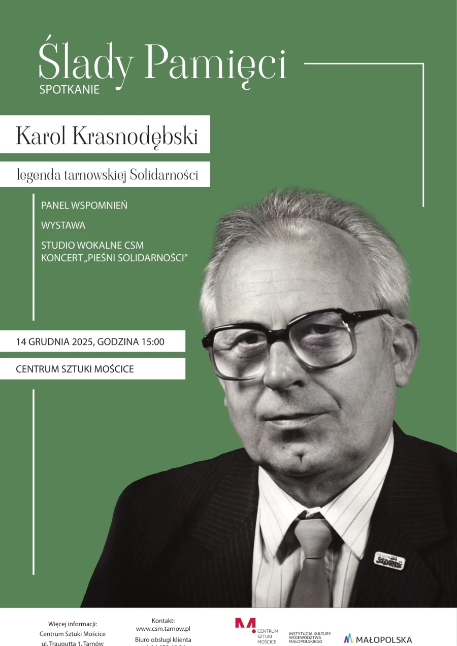 „Ślady Pamięci” to nowy cykl spotkań poświęconych ludziom, wydarzeniom i miejscom, które tworzyły historię naszego regionu. Pierwsze spotkanie dedykowane będzie Karolowi Krasnodębskiemu – legendarnej postaci tarnowskiej „Solidarności”, posłowi Ziemi Tarnowskiej, wybitnemu działaczowi opozycji antykomunistycznej. Podczas wydarzenia uczestnicy wysłuchają rozmowy i wspomnień o jego życiu i działalności z udziałem rodziny, działaczy tarnowskiej Solidarności, osób z którymi pracował i działał. Spotkaniu towarzyszyć będzie […]