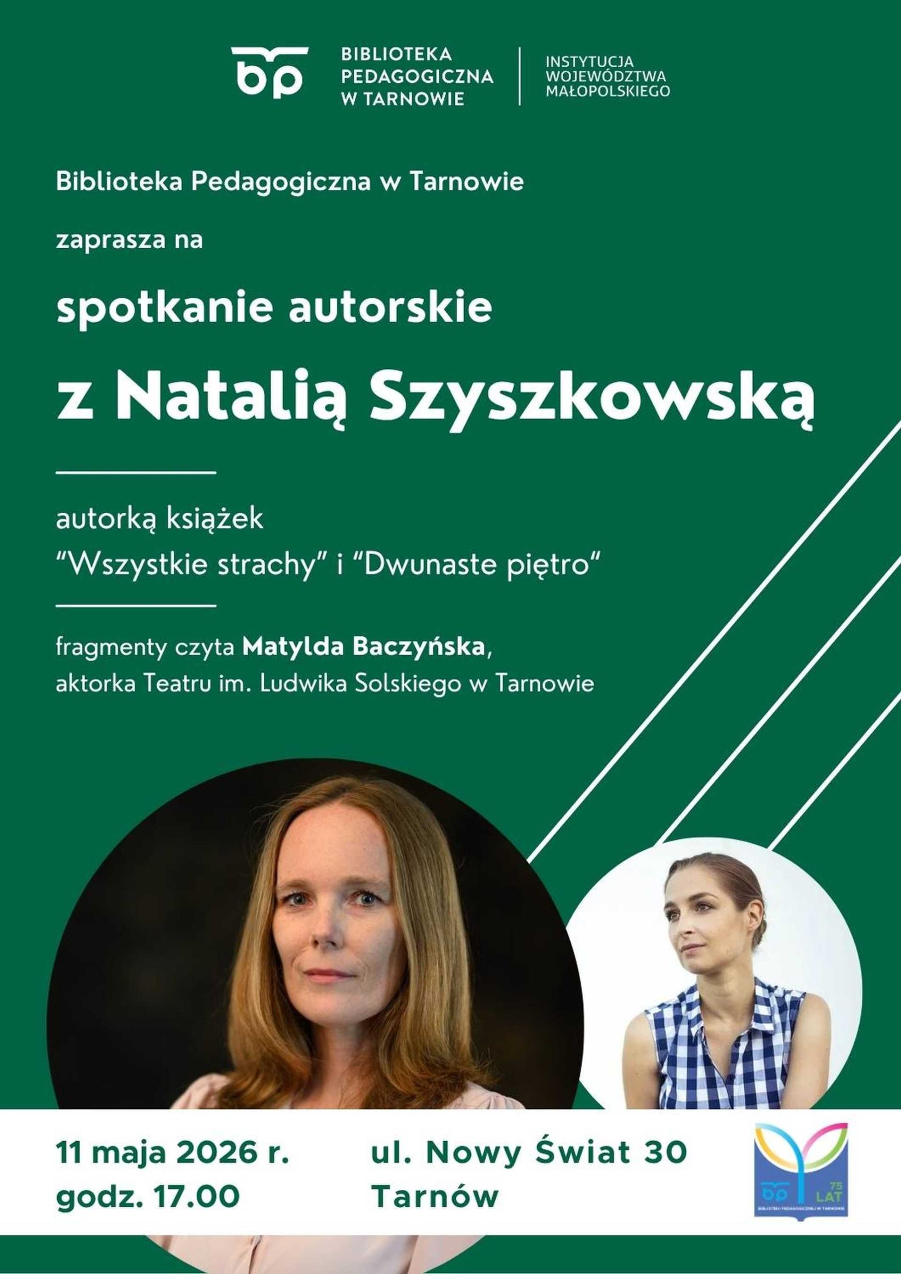Biblioteka Pedagogiczna Tarnów Nowy Świat 30, Tarnów, MałopolskaKolejne spotkanie autorskie organizowane przez Bibliotekę Pedagogiczną należeć będzie do pisarki Natalii Szyszkowskiej. Wydarzenie odbędzie się w poniedziałek, 11 maja w siedzibie biblioteki przy ul. Nowy Świat 30. Spotkanie rozpocznie […]