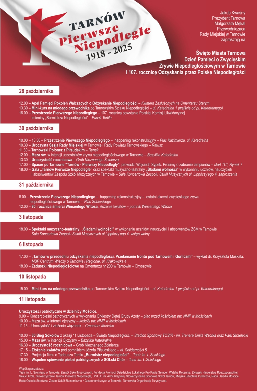 Uroczysty polonez, spacer po Tarnowie, spektakl muzyczny czy wspólne śpiewanie pieśni patriotycznych. Tak będzie wyglądał Dzień Pamięci o Zwycięskim Zrywie Niepodległościowym w Tarnowie i 107. rocznica odzyskania przez Polskę Niepodległości.